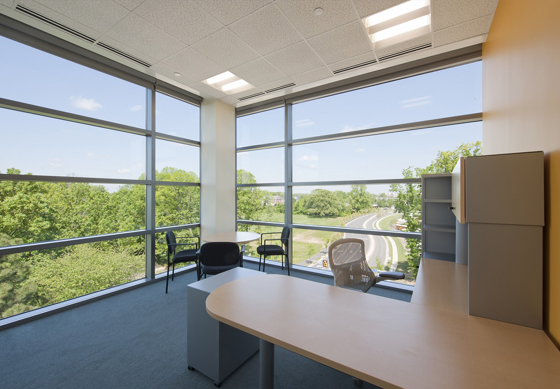 This five-story project consisted of 150,000 Aggregate SF of classroom and administrative offices; 120,000 SF of administrative office space on levels two through five and 20,000 SF of classrooms and 10,000 SF future retail space on level one. The project utilized structural steel, masonry, metal panels, curtainwall skin, and aggregate pier foundations. It also included 1,200 LF tunnel extension, HVAC system fed by an underground high-temperature hot water tunnel and all related interior improvements. Interior improvements included classroom projectors, projection screens and telepresence room with webcam and fabric walls and related site improvements including large lawn and grass areas.