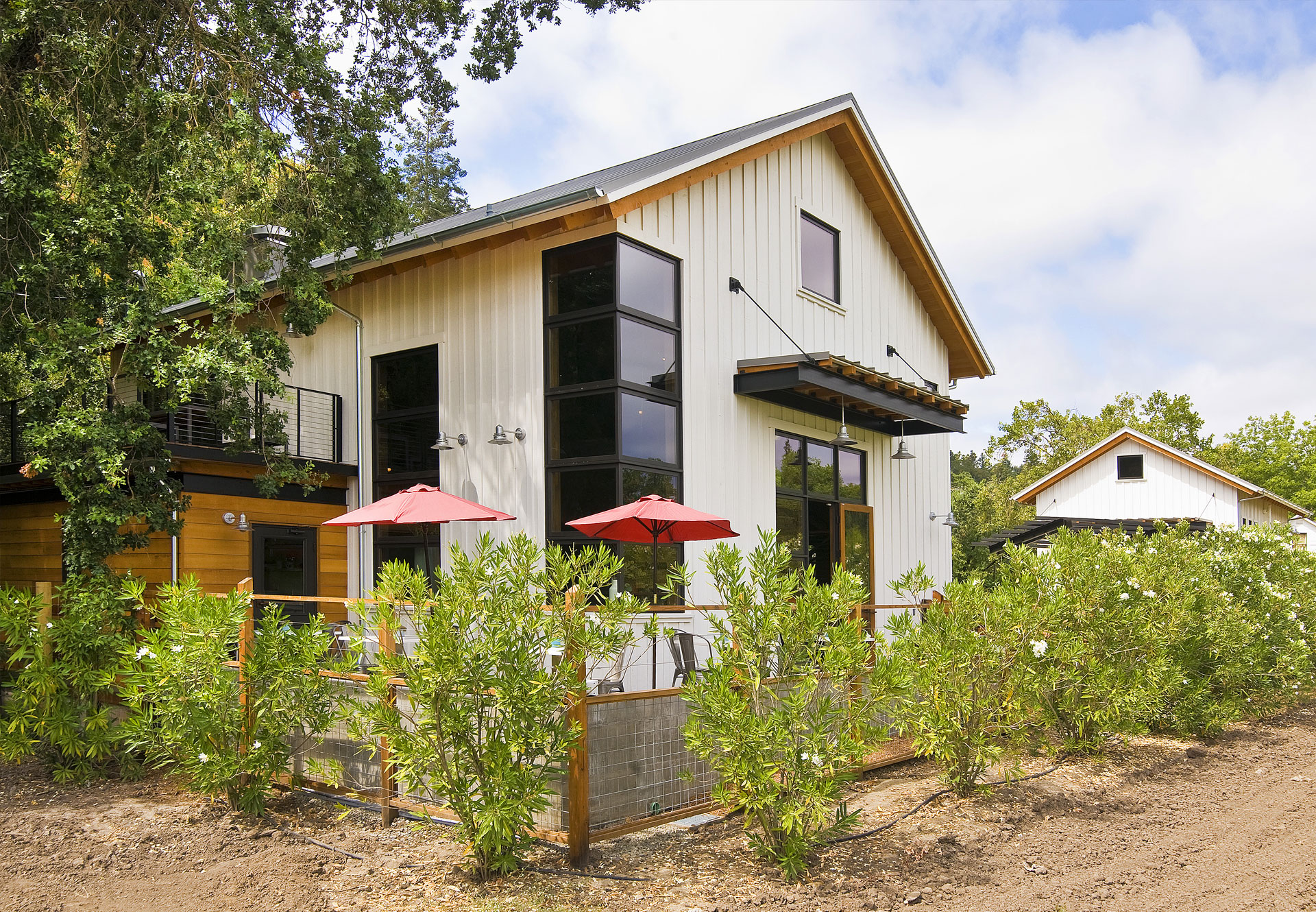 Located at southern end of the Napa Valley, this project involved the construction of a winery, tasting room and administrative offices. The dual level structure accommodates offices, meeting rooms, seasonal work spaces, storage and utilities, as well as a visitor reception and tasting room. The small stainless steel tank room houses about 6 tanks and the barrel room houses approximately 120 barrels. A small storage and mechanical room is hidden at the very back of the cellar. Private indoor/outdoor rooms were created on both levels to accommodate more intimate wine tastings.